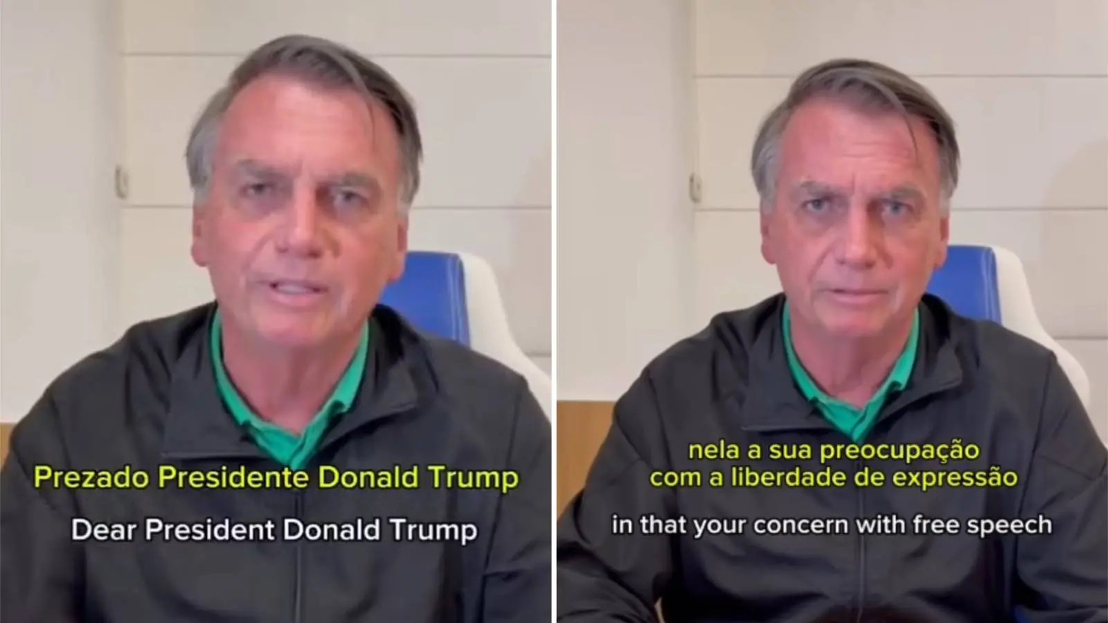 Na mensagem, o republicano disse que o território brasileiro deveria mudar de rumo e parar de perseguir o antigo mandatário. Em resposta na postagem, Bolsonaro disse ter "imensa gratidão" pelo apoio do aliado e afirmou que responde por um "crime inexistente". Ele é acusado de tentar dar um golpe de Estado após o resultado das eleições de 2022, quando perdeu o pleito para Lula (PT).