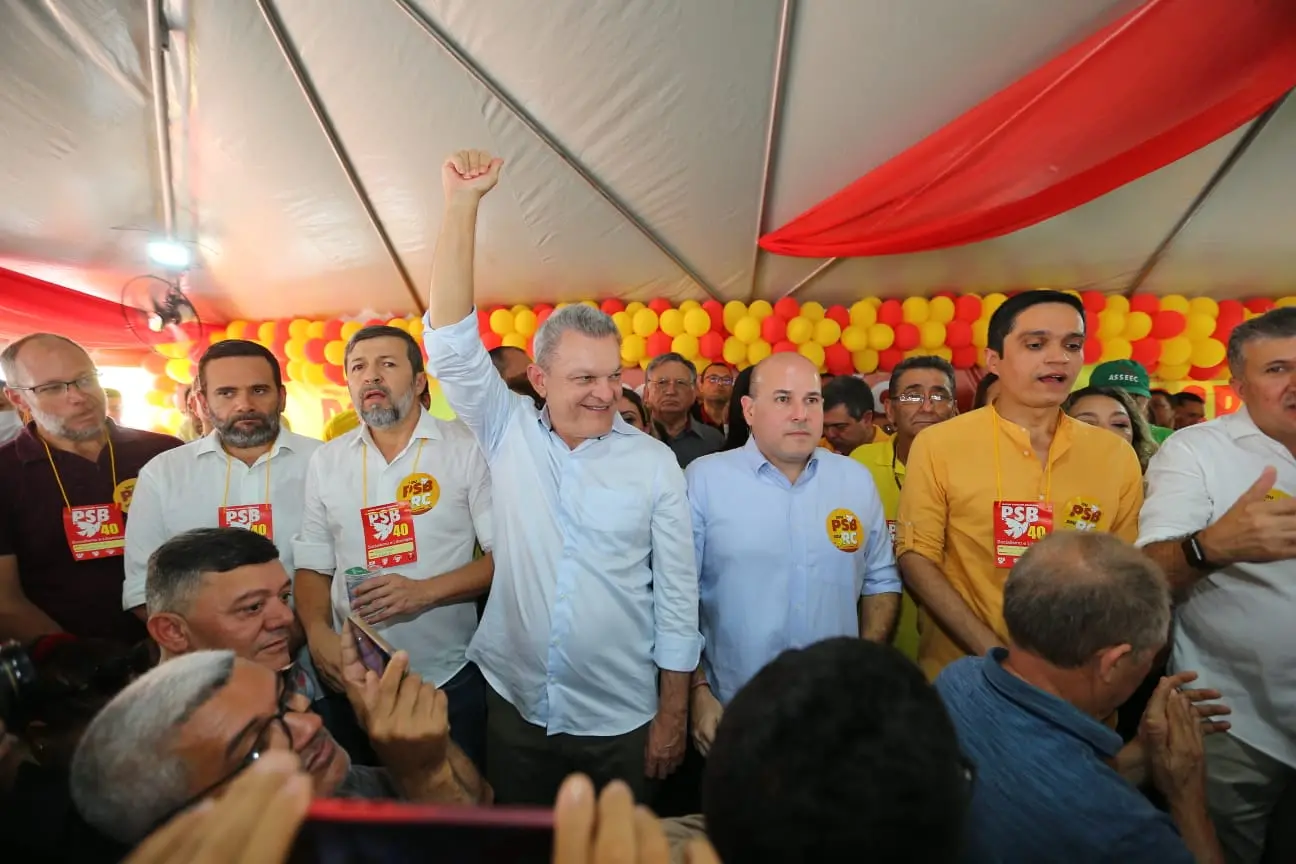 Ao lado de Roberto Cláudio, Sarto participa de convenção do PSB Ceará, na manhã desta quarta-feira (27), que oficializa apoio da sigla à candidatura do ex-prefeito de Fortaleza.