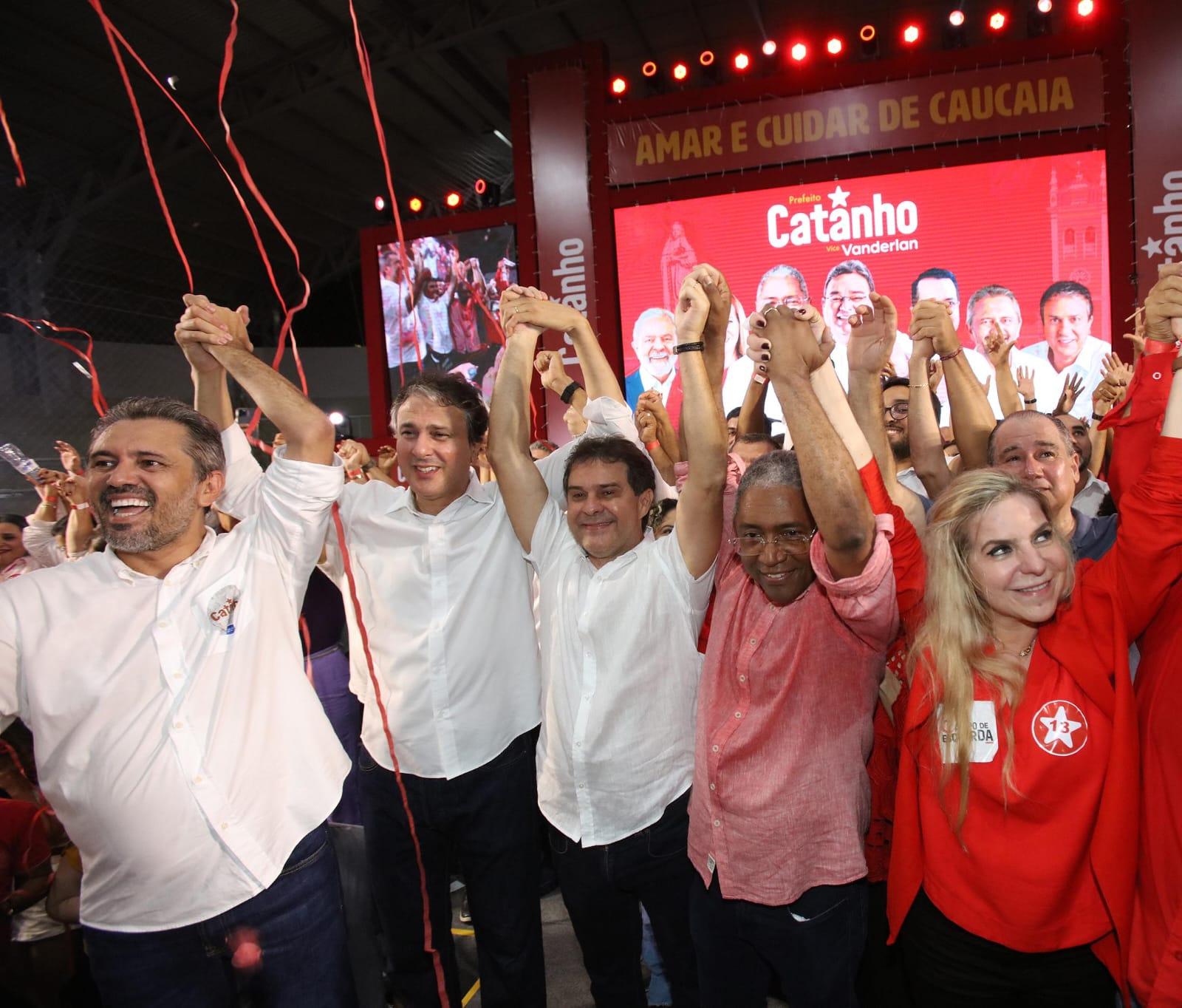 A deputada federal Luizianne Lins (PT) dividiu palanque, neste domingo (4), com o presidente da Assembleia Legislativa do Ceará, Evandro Leitão (PT), pela primeira vez desde que ele venceu a disputa interna e foi escolhido candidato a prefeito de Fortaleza. O momento aconteceu na convenção partidária do PT em Caucaia, quando foi oficializada a candidatura de Waldemir Catanho (PT).