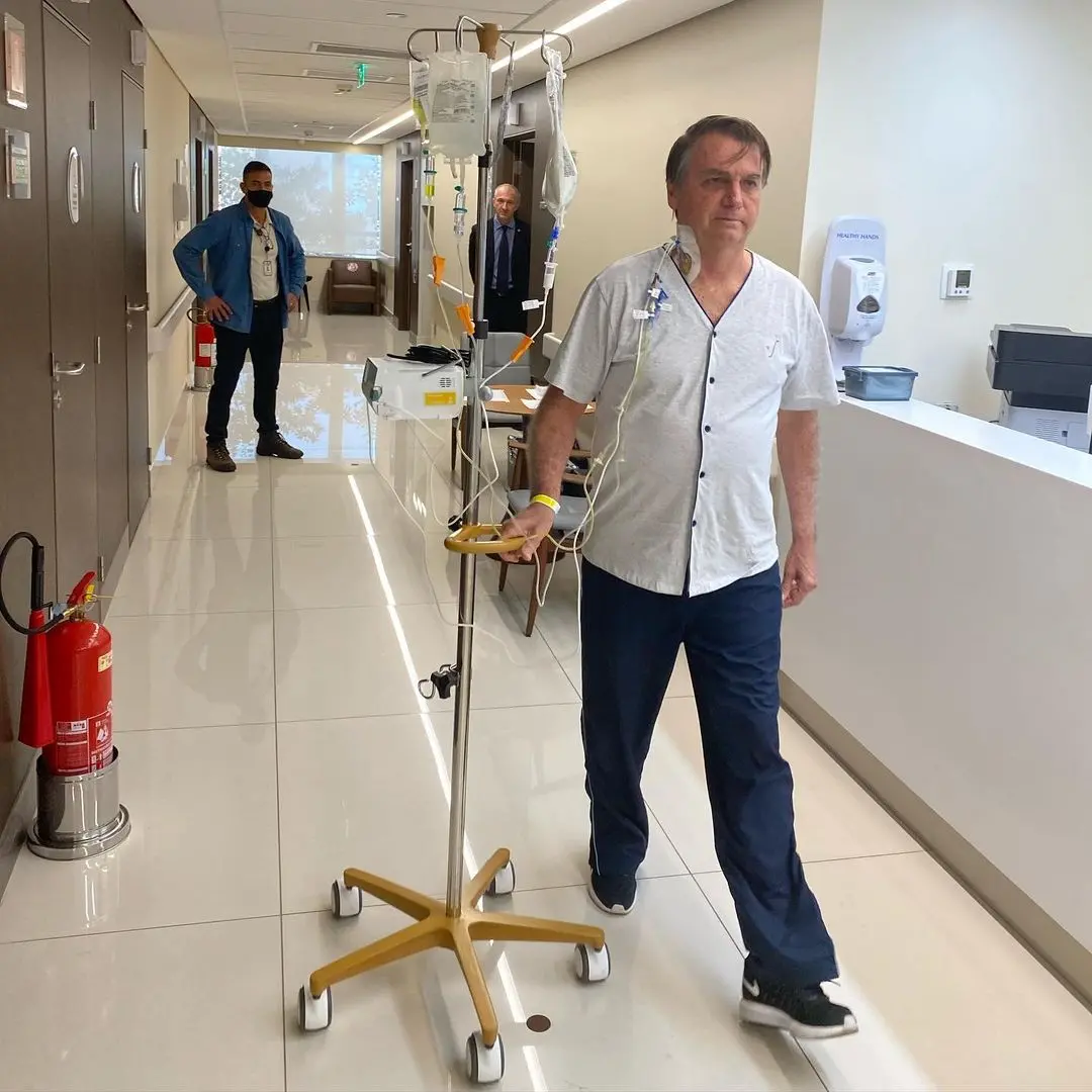 "Dada a facada que eu recebi e quatro cirurgias, essa obstrução [intestinal] é sempre um risco muito alto. Mas, graças a Deus, de ontem para hoje, evoluiu bastante esse quadro. Então, a chance de cirurgia está bastante afastada", disse o presidente.