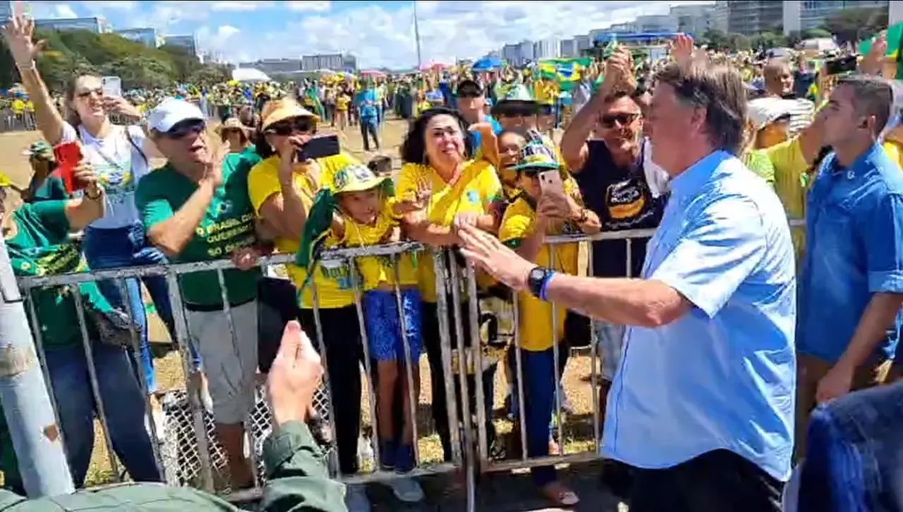 No meio da caminhada, o presidente deu uma declaração para uma pessoa que estava transmitindo o ato ao vivo na conta do Facebook do presidente. Bolsonaro disse que tinha ido cumprimentar os brasilienses pela manifestação.