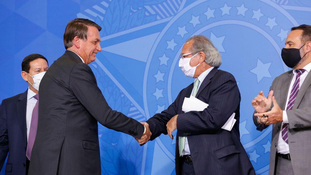 “Paulo Guedes continua no governo, e o governo segue com a política de reformas. Defendemos as reformas, que estão andando no Congresso Nacional, esse é o objetivo", declarou Bolsonaro à emissora.