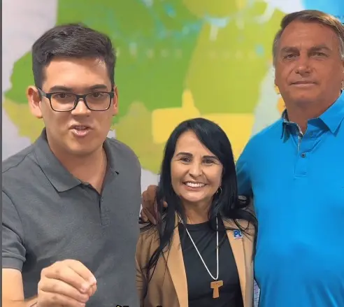 No vídeo, o político aparece ao lado do presidente do PL Ceará, o deputado estadual Carmelo Neto (PL), e da candidata a vice-prefeita da sigla, Alcyvania Pinheiro (PL).