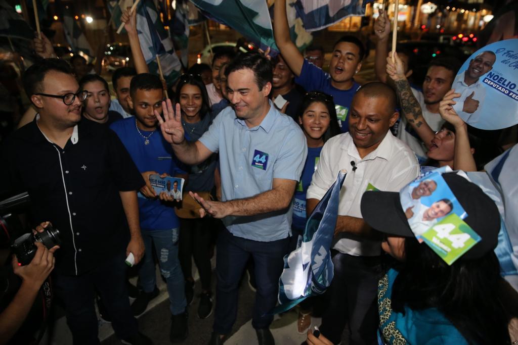 E encerra o primeiro dia de campanha na inauguração do comitê de candidato ao legislativo.