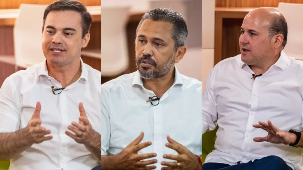 Elmano de Freitas (PT), Roberto Cláudio (PDT) e Capitão Wagner (União Brasil) são os três principais candidatos a governador do Ceará.