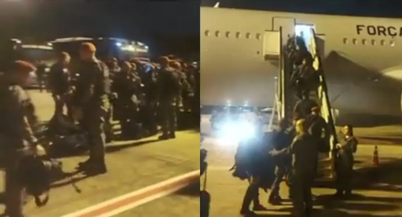 Nas redes sociais, o governador Elmano de Freitas publicou vídeo dos PMs sendo transportados pelo avião da Força Aérea Brasileira.