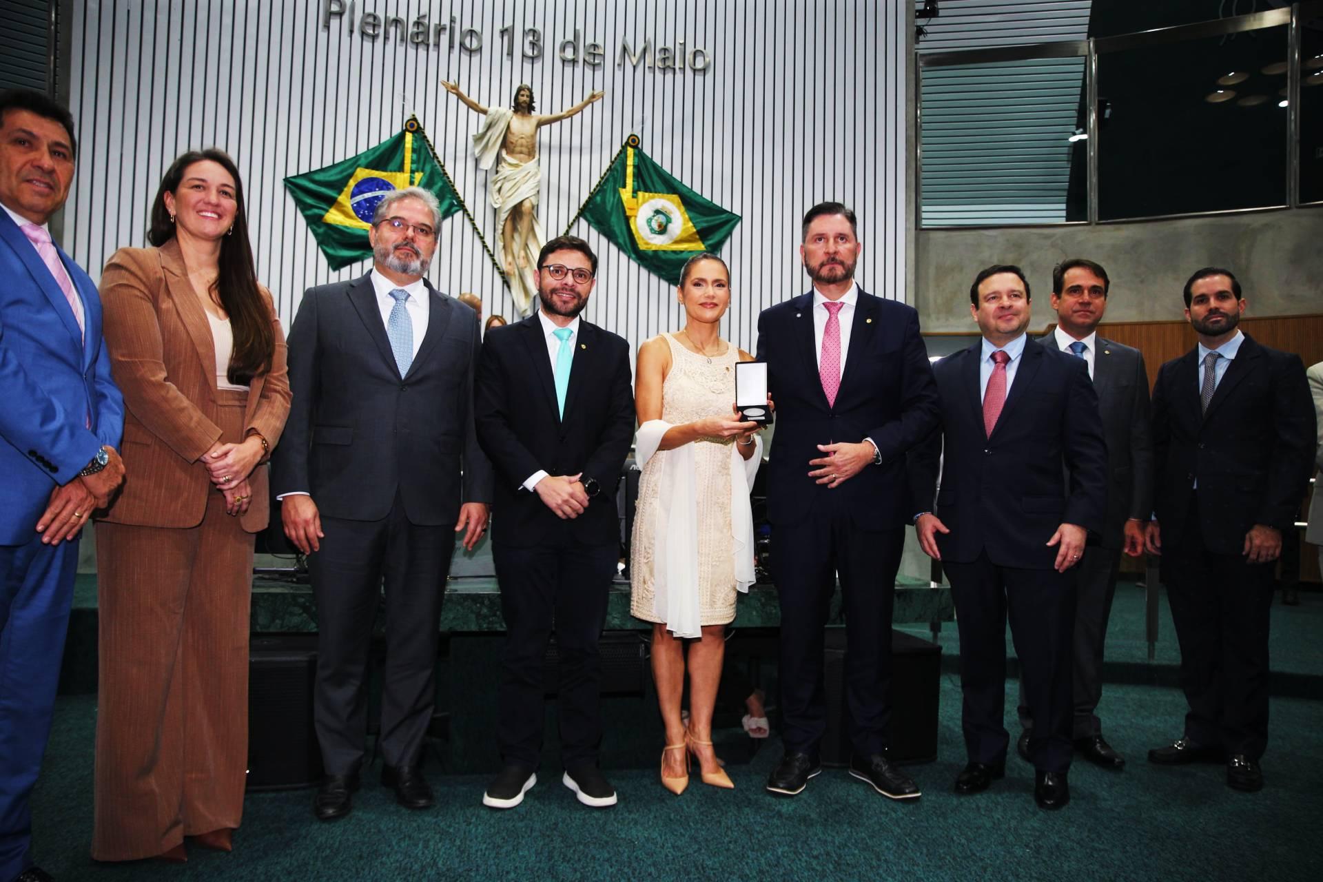 A solenidade na Alece contou ainda com a presença de familiares de Edson Queiroz, como os netos Igor Queiroz Barroso - acompanhado de sua esposa Aline Félix Barroso; Otávio Queiroz - acompanhado de sua esposa Adriana Queiroz; Felipe Queiroz Rocha; e o genro Silvio Frota.