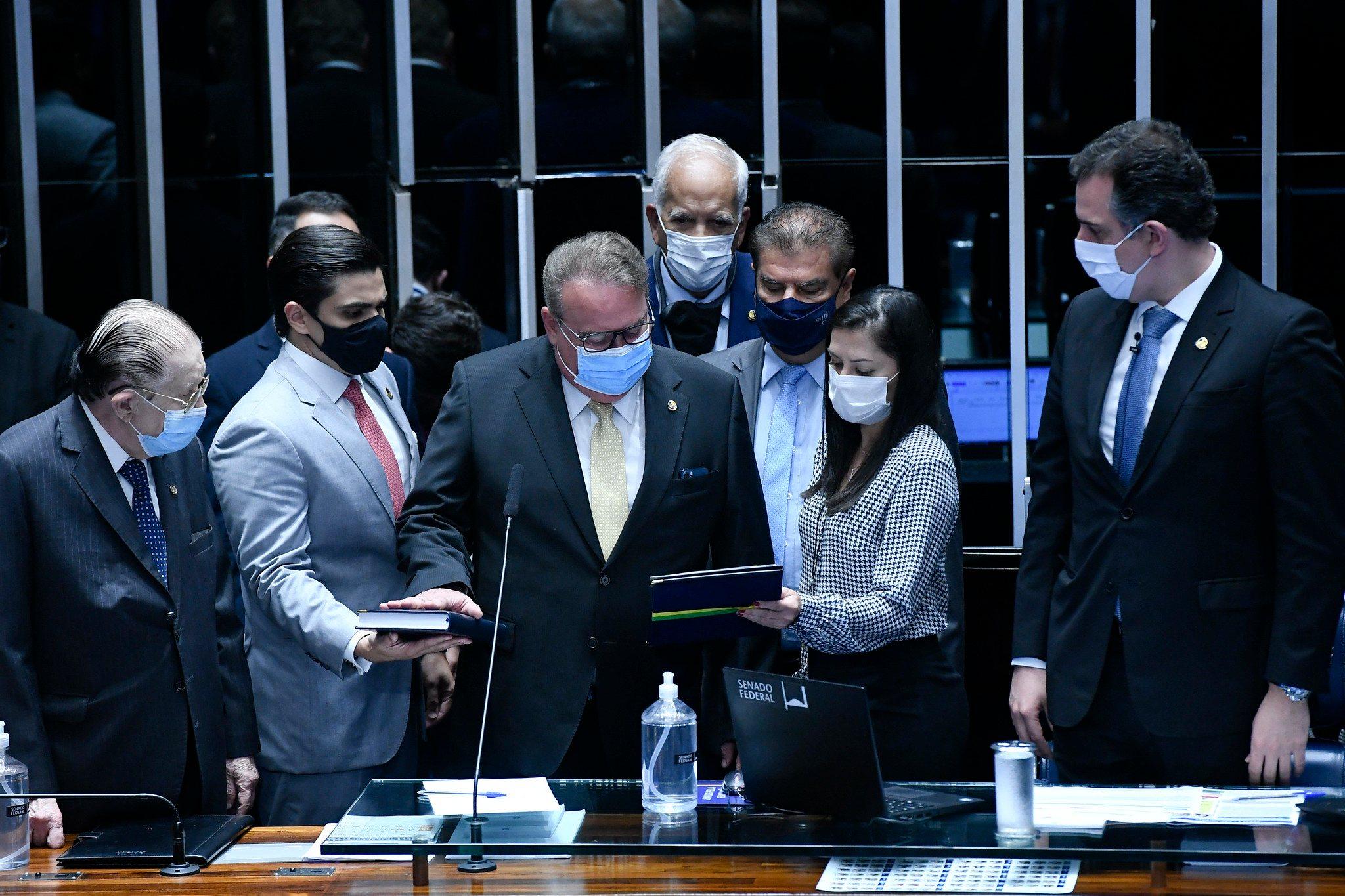 O presidente do Senado, Rodrigo Pacheco (DEM-MG), saudou o parlamentar recém-empossado e destacou a presença das outras autoridades na Casa. “Das posses de senadores, essa talvez seja uma das mais prestigiadas”, ressaltou.