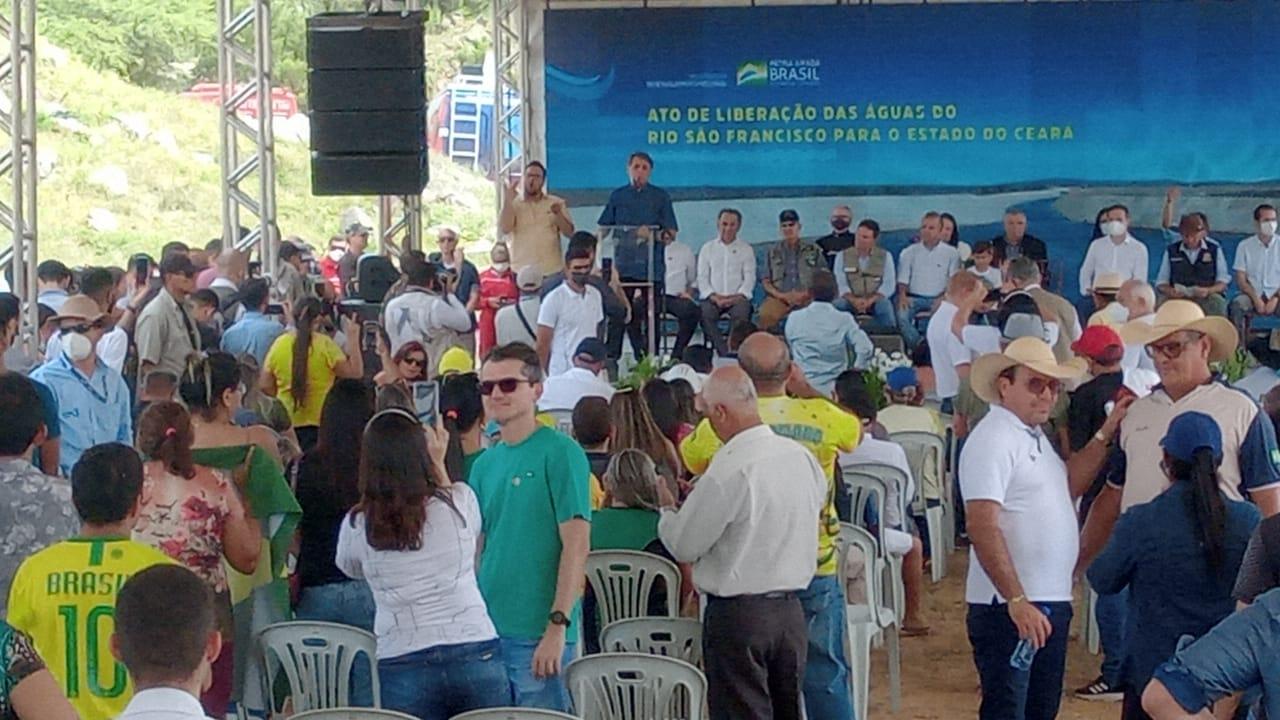 “Um ano de Auxílio Emergencial referente a 2020 equivaleu a 15 anos de Bolsa Família”, discursou Bolsonaro na manhã desta terça-feira (8), em Jati, interior do Estado, na ocasião da liberação das águas da Transposição do Rio São Francisco para o Ceará.
