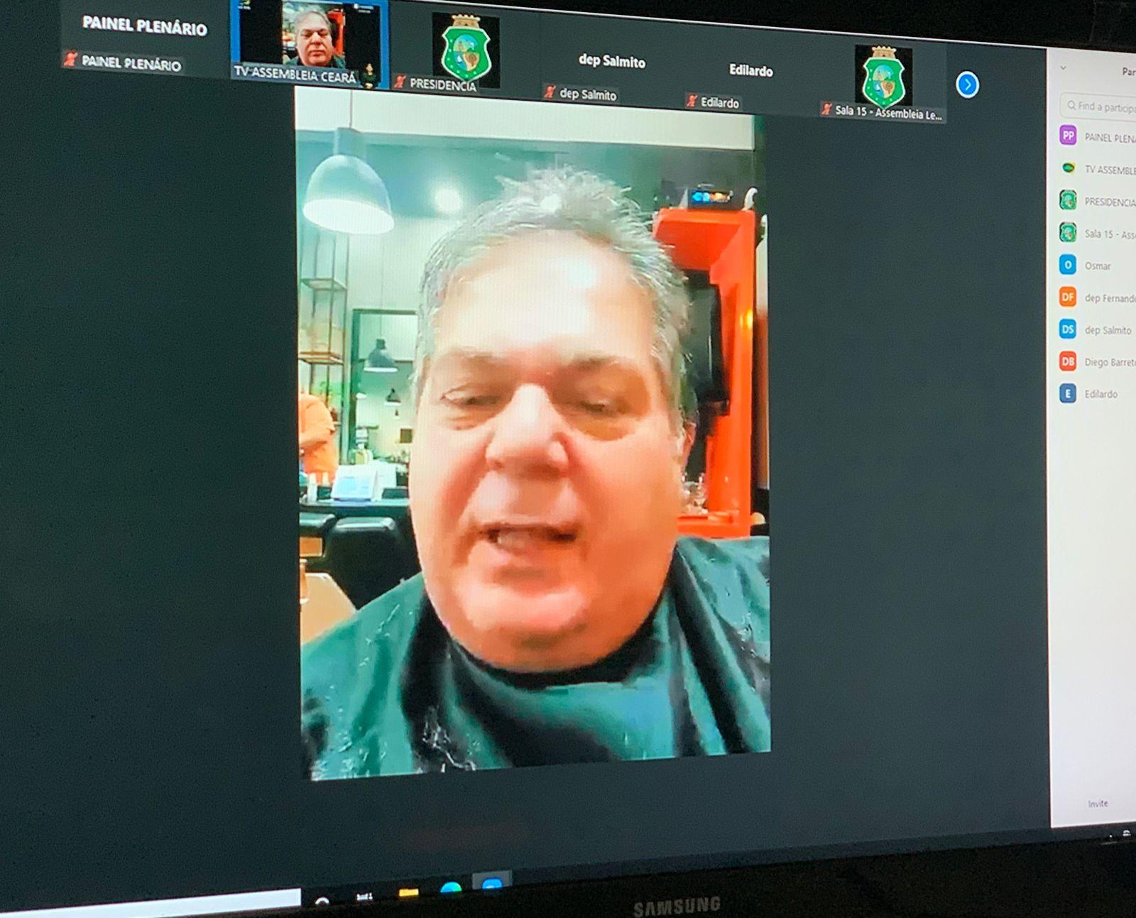 A temática, no entanto, ficou em segundo plano diante da cena: o deputado Baquit estava sentado na cadeira de um barbeiro, cortando o cabelo. Para se pronunciar, ele teve que pedir ao profissional que desse uma pausa.