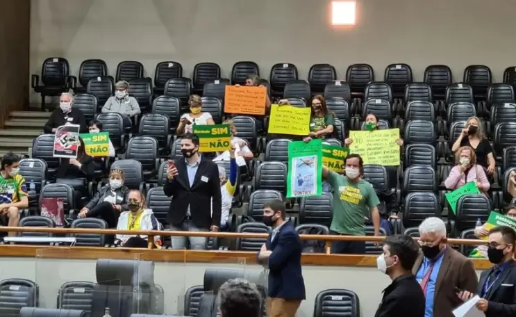 A sessão plenária da Câmara Municipal de Porto Alegre desta quarta-feira (20) - que discutia sobre a exigência do passaporte vacinal em eventos esportivos na cidade - foi suspensa após invasão de manifestantes contrários à proposta. O grupo expôs cartazes em repúdio ao projeto e um deles continha a imagem de uma suástica, símbolo nazista.