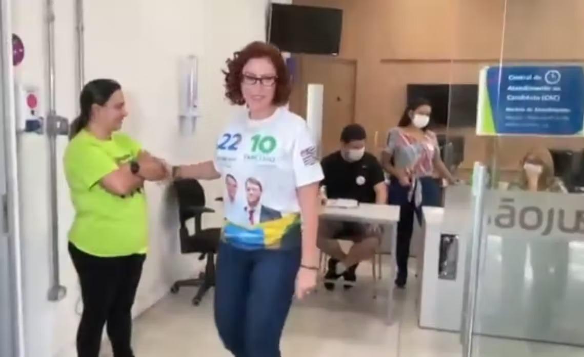 Questionada por jornalistas, a deputada se recusou a responder se estava armada