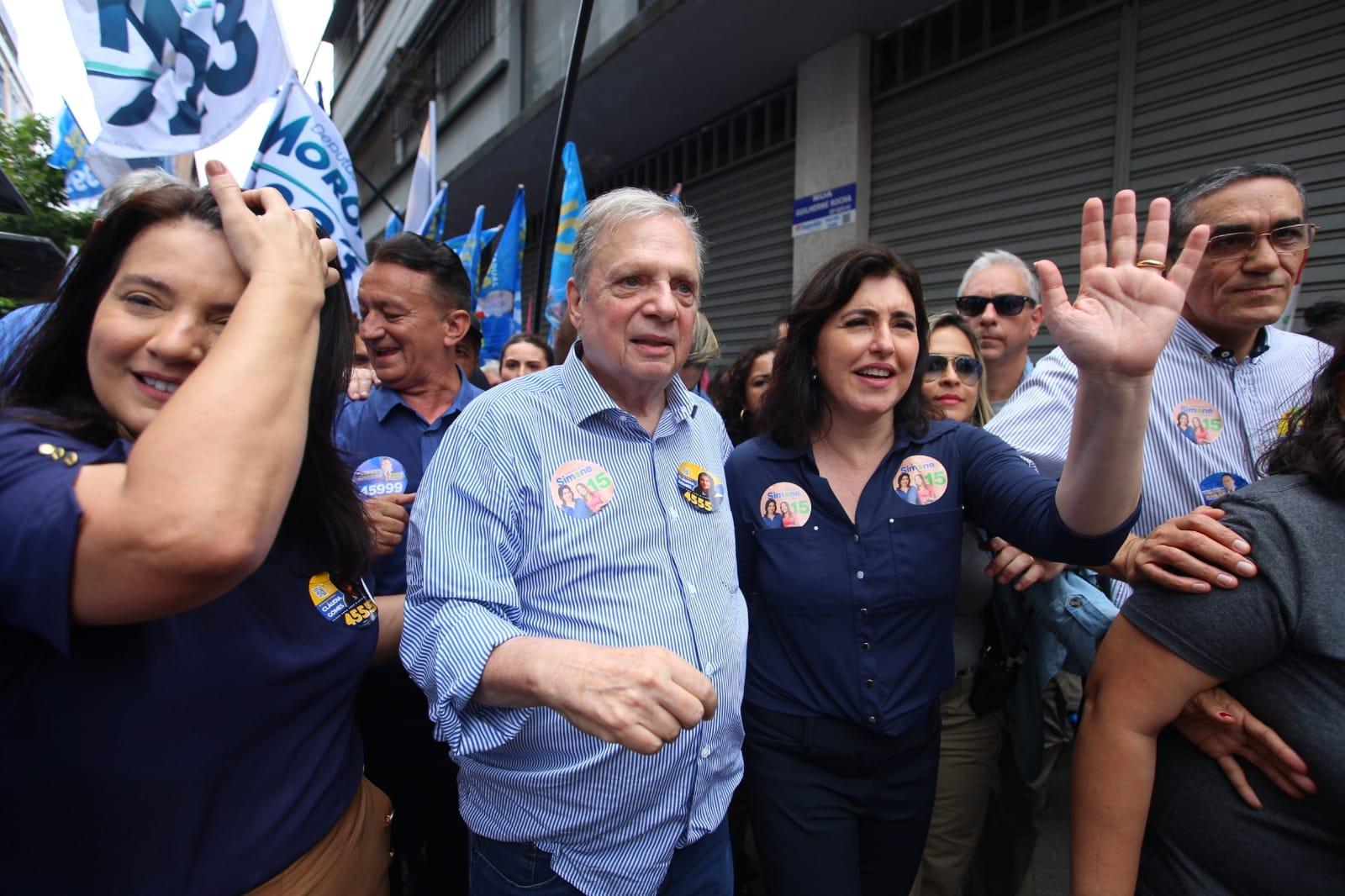 Em Fortaleza, Simone Tebet faz caminhada no Centro ao lado de Tasso Jereissati e defende propostas