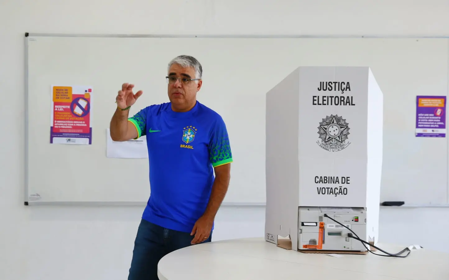 O senador Eduardo Girão (Podemos) chegou ao seu local de votação, no Instituto de Ciências do Mar (Labomar), pouco antes das 9h deste domingo (30). Acompanhado da esposa, Girão afirmou não acreditar em uma virada de Bolsonaro no Ceará, mas aposta em uma diminuição da margem de Lula.
