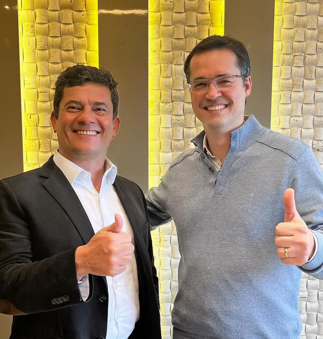 Nomes alavancados pela Operação Lava Jato, o ex-juiz Sergio Moro (União Brasil) e o antigo procurador Deltan Dallagnol (Podemos) foram eleitos para cargos no Congresso Nacional, neste ano, pelo Paraná. Um para o Senado Federal e outro para a Câmara dos Deputados, respectivamente. Os dois se encontraram para comemorar o resultado.