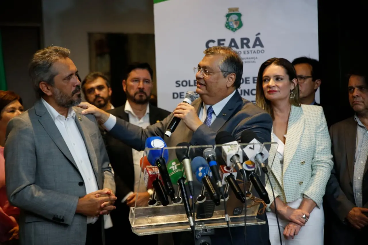 "Queria apenas dar uma informação de que nós estamos muito gratos, ministro Flávio Dino, ao que vossa excelência tem feito pelo Ceará e pelo Brasil. Vamos fazer uma manifestação, com nossos parlamentares. Hoje vou poder assinar uma sanção de lei que lhe dá o título de cidadão cearense", afirmou, antecipando a homenagem.