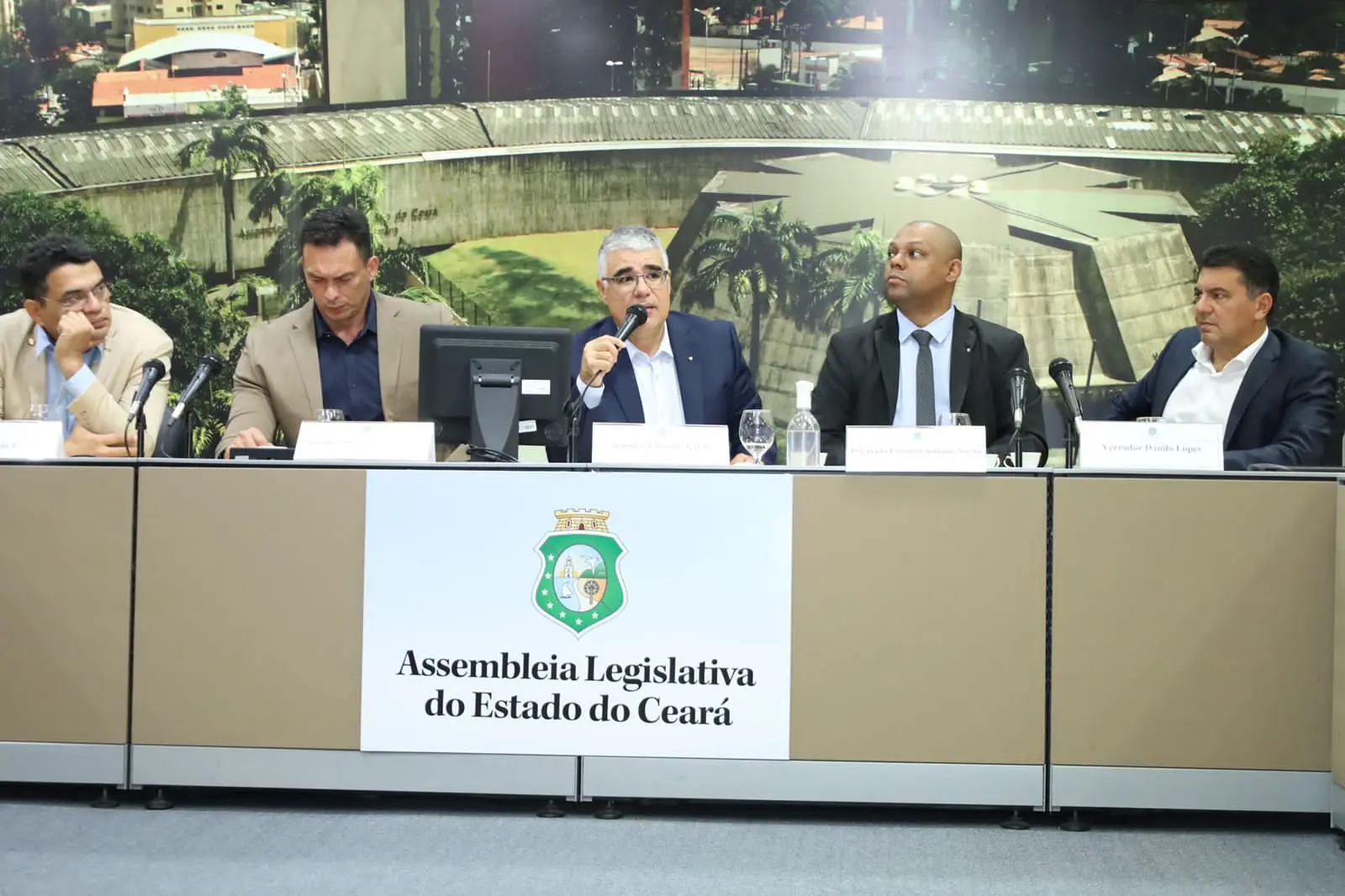 Os vereadores de Fortaleza Danilo Lopes (Avante), Priscila Costa (PL), Sargento Reginauro (UB) e Jorge Pinheiro (PSDB) também participaram da audiência. Além deles, os deputados estaduais Soldado Noélio (UB) e Tony Brito também compuseram a mesa.