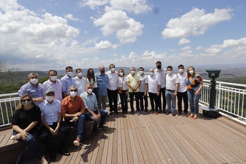 A inauguração do Complexo do Mirante do Caldas em Barbalha, no Cariri - terra natal e berço político do governador Camilo Santana (PT), levou aliados de peso ao evento, que ganhou ares de exposição de pré-candidatos das eleições de 2022.