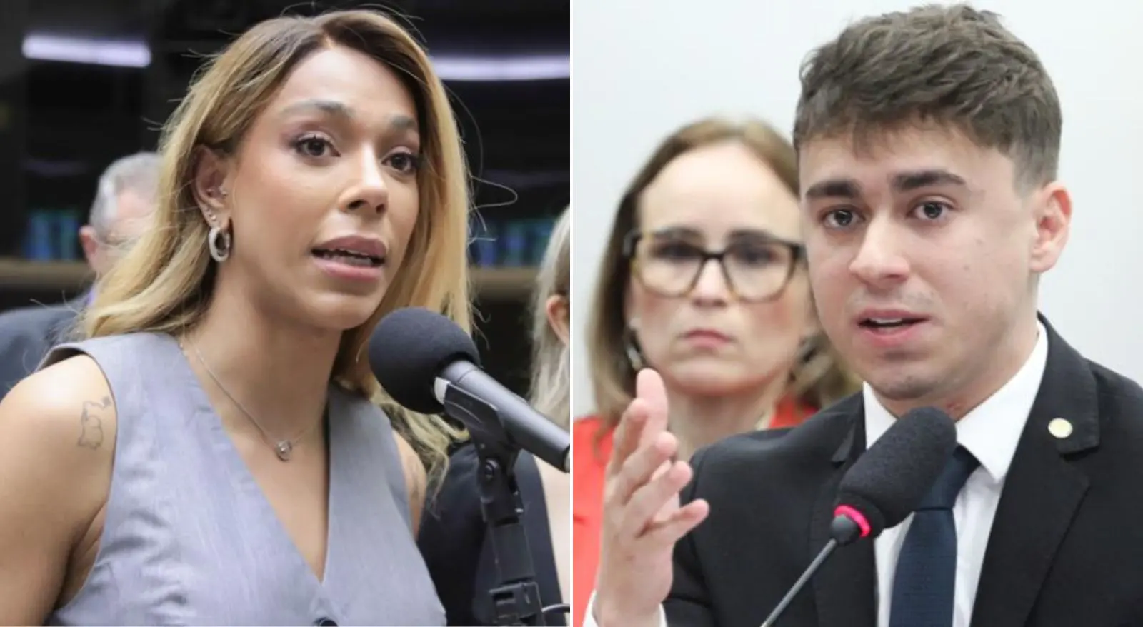 Então, Nikolas, que estava sentado na mesma fileira de Erika e estava acompanhado de um homem que filmava a cena, saiu em defesa da colega de partido e disparou: "Pelo menos ela é ela". As falas foram ditas fora do microfone, mas o próprio deputado fez questão de gravar a cena e postar o vídeo em suas redes sociais.
