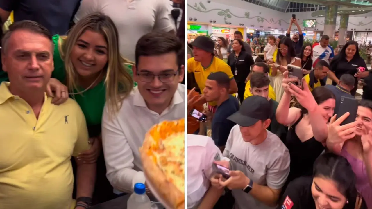 Ex-presidente Jair Bolsonaro encontra apoiadores e come pizza em shopping de Fortaleza
