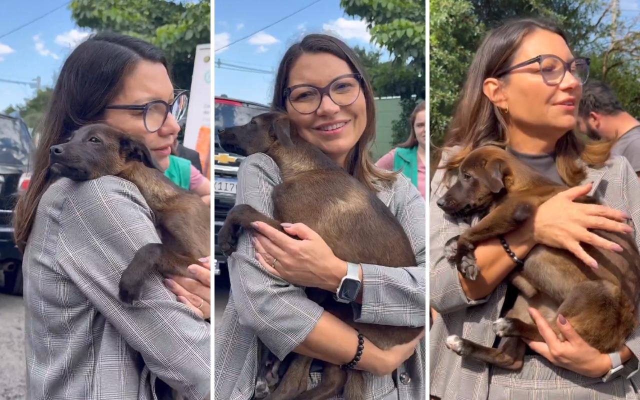 Em vídeo compartilhado, a cachorra aparece aconchegada nos braços de Janja. Uma das funcionárias do processo de adoção agradeceu à primeira-dama pelo gesto. "A gente está sentindo uma alegria muito grande no meio de quatro dias de muito sofrimento, de muita dor, e esses momentos de adoção são muito gratificante para nós. Cada vidinha dessas é uma vida salva que merece um lar e uma casa para chamar de sua", afirmou.