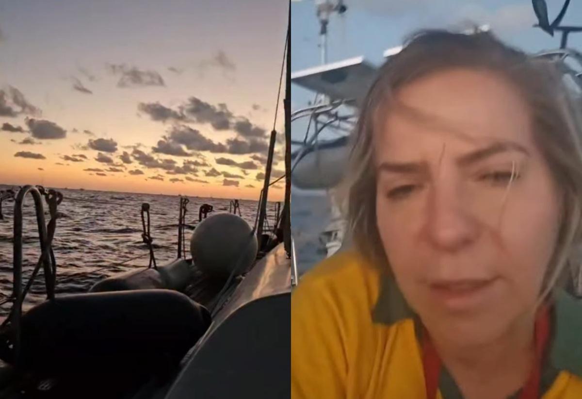 Em vídeo, ela relata que os tripulantes da embarcação estavam ouvindo as explosões enquanto navegavam no Mar Mediterrâneo. Além dos danos, também houve interferência nas comunicações da flotilha.