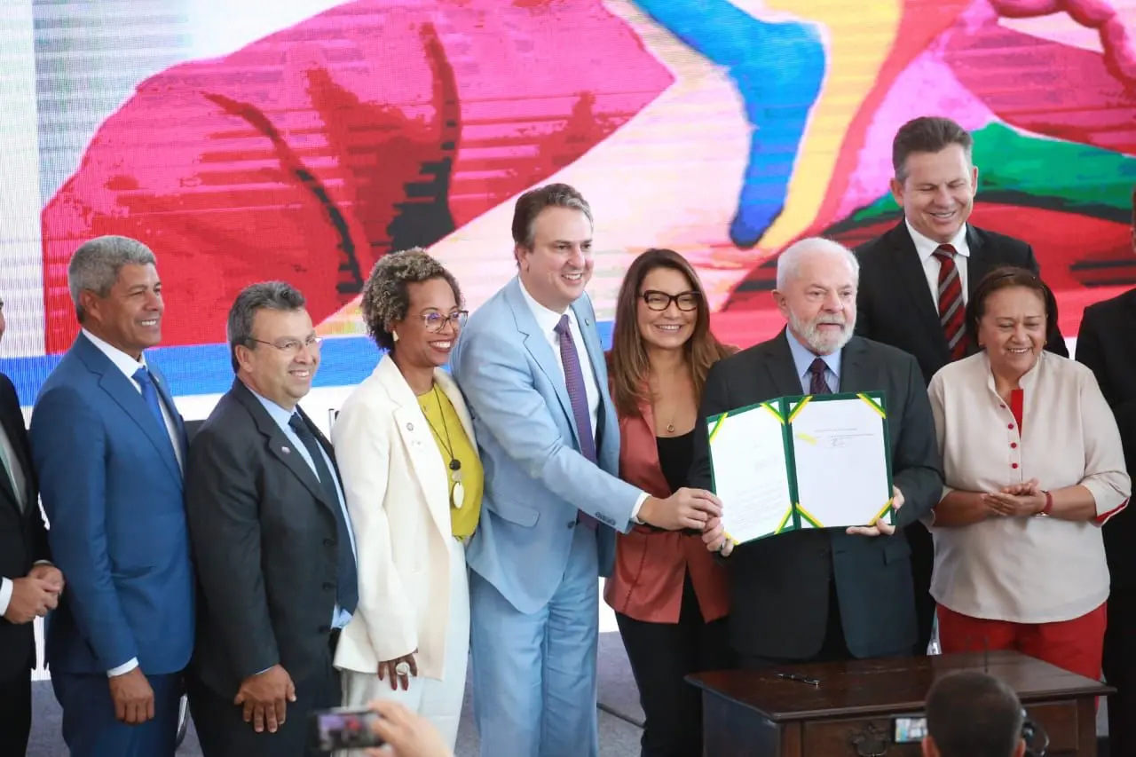 O presidente da República, Luiz Inácio Lula da Silva (PT), ao lado do Ministro da Educação, Camilo Santana, sancionou, nesta segunda-feira (31), a lei que institui o Programa Escola em Tempo Integral em todo o Brasil.