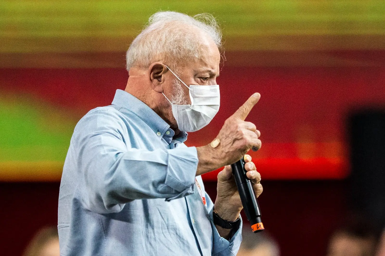 Lula, que tem 78 anos, participou do evento eleitoral nesta manhã e se manteve o tempo inteiro com a máscara, fazendo uso da proteção facial também durante seu discurso.