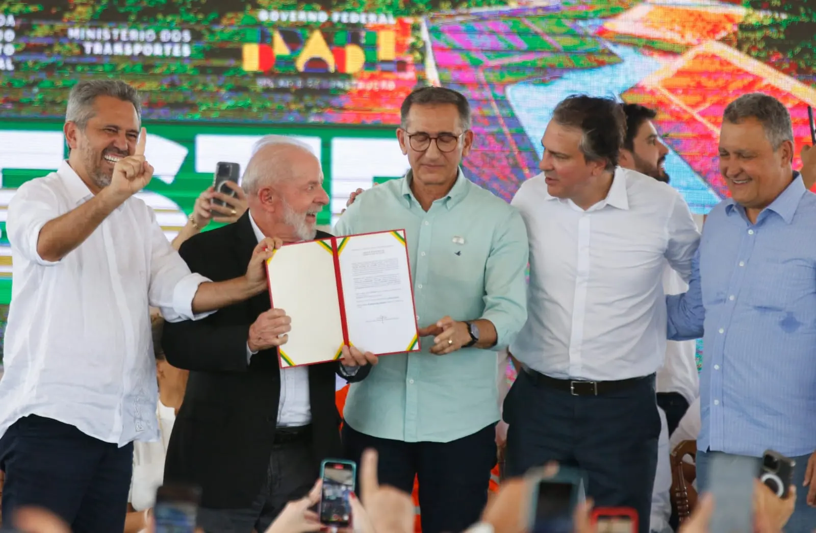 O presidente Luiz Inácio Lula da Silva (PT) visitou o Ceará, nesta sexta-feira (5), acompanhado do ministro dos Transportes, Renan Filho, do Desenvolvimento Regional, Waldez Góes, e da Educação, Camilo Santana, para acompanhar as obras da ferrovia Transnordestina, no trecho localizado no município de Iguatu, na região Centro-Sul do Estado. Ele também anunciou ações voltadas à segurança hídrica no Estado.