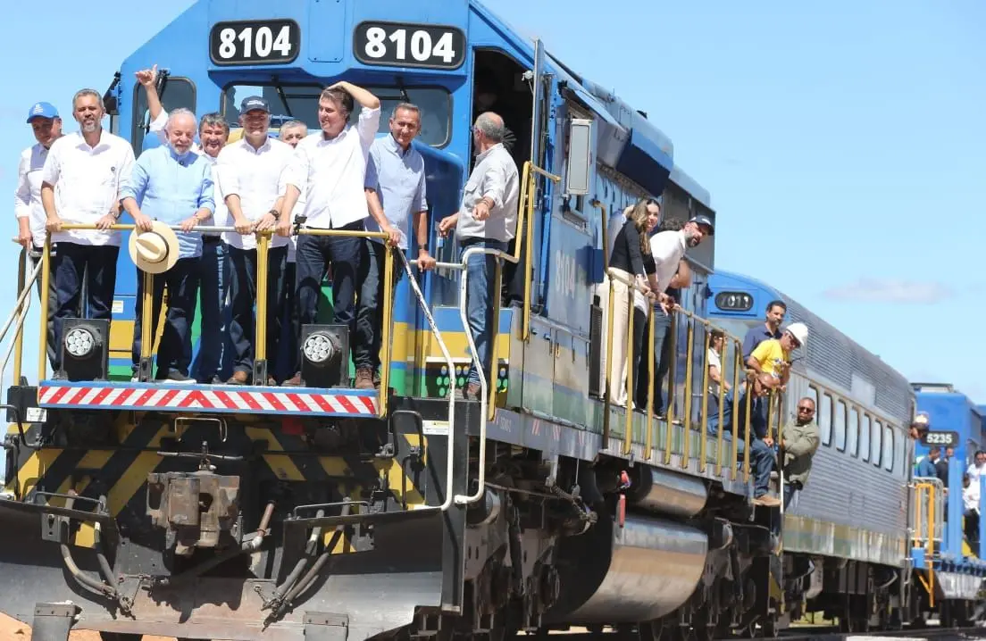 Ao lado do governador, Elmano de Freitas (PT), Lula chegou de trem ao local do evento para anunciar R$ 1,4 bilhão para a ferrovia.