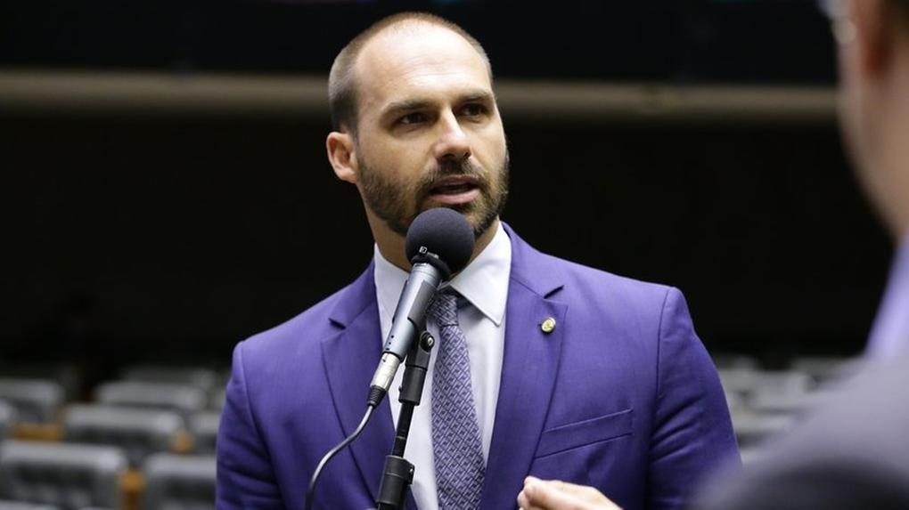O filho do ex-presidente Jair Bolsonaro está nos EUA e anunciou que pedirá licença do cargo na Câmara