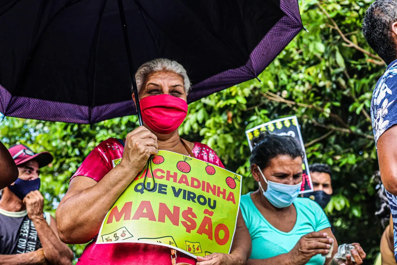MTST protesta contra fome e inflação em frente à mansão de Flávio Bolsonaro em Brasília