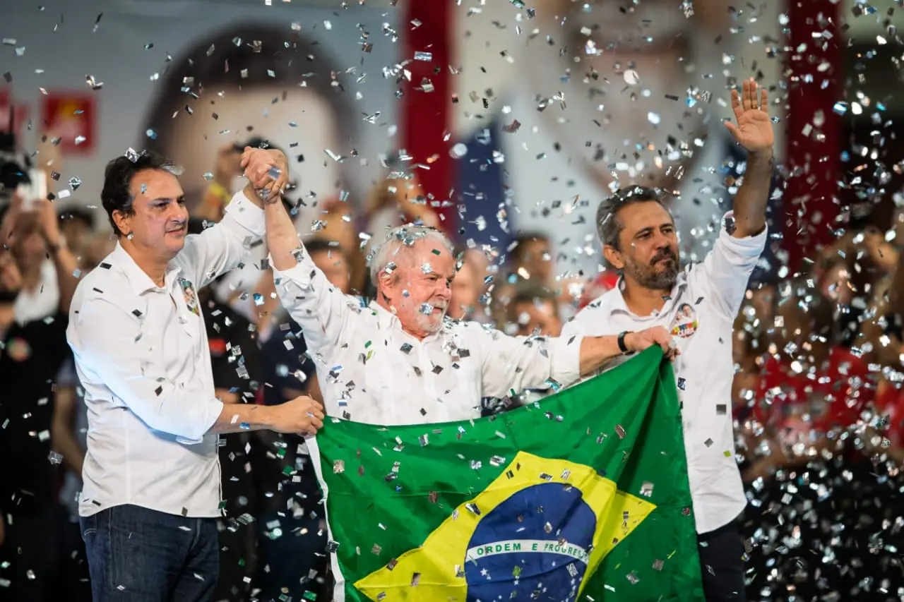 O ex-presidente Luiz Inácio Lula da Silva (PT) desembarcou no Ceará, neste sábado (30), para a convenção do PT que lançou o deputado estadual Elmano de Freitas (PT) para disputar o Governo do Ceará e o ex-governador Camilo Santana (PT) para concorrer ao Senado Federal. O evento marcou o reagrupamento, sob a liderança do PT, da maior parte dos partidos que atualmente compõem o arco de aliança governista, incluindo PV, PCdoB e MDB.