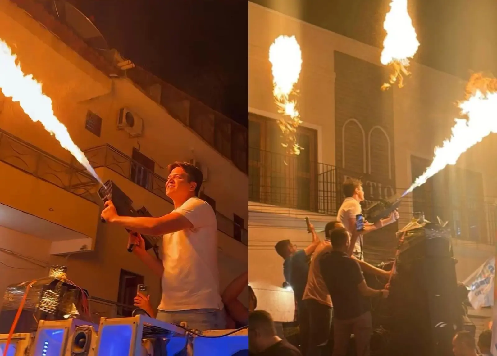 Nas redes sociais do prefeito, é possível encontrar imagens dele usando um aparelho semelhante a um lança-chamas durante ato eleitoral nas ruas de Baturité. No vídeo, o gestor aparece segurando o equipamento em cima de um carro de som. Outras imagens mostram Mota usando outros equipamentos de pirotecnia usando fogo.