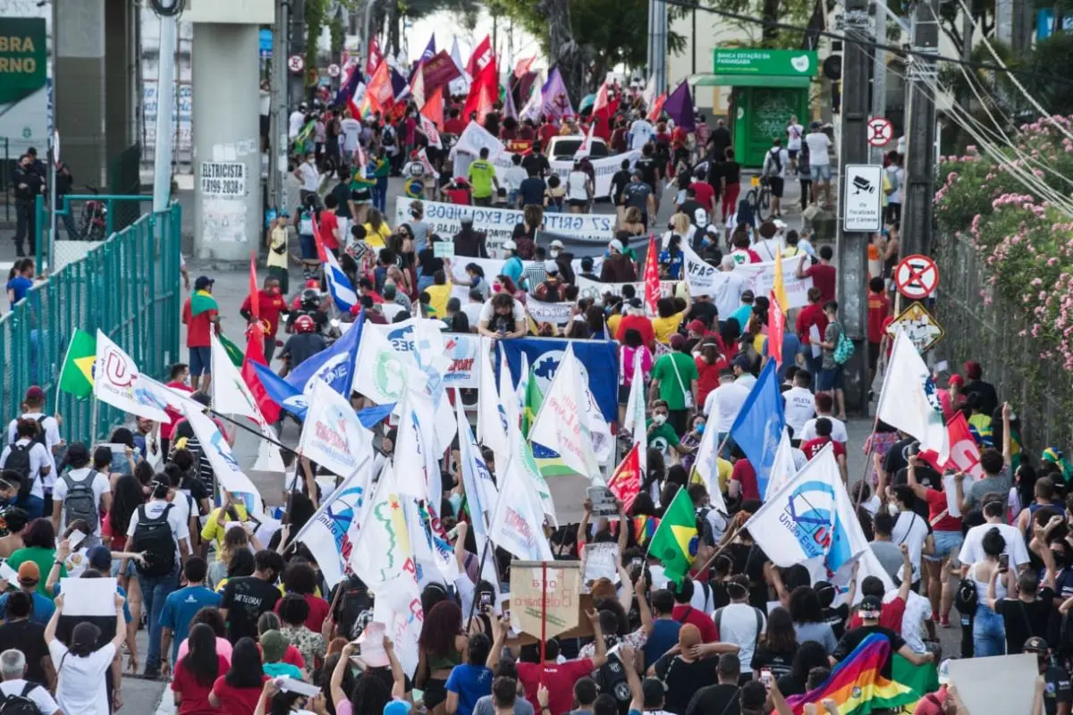 Com cartazes de "Fora, Bolsonaro" e pedidos de mais vacinas contra a Covid-19 e respeito à Constituição, o movimento contou com presença de lideranças partidárias de esquerda, movimentos sociais e sociedade civil, além de alguns políticos cearenses.