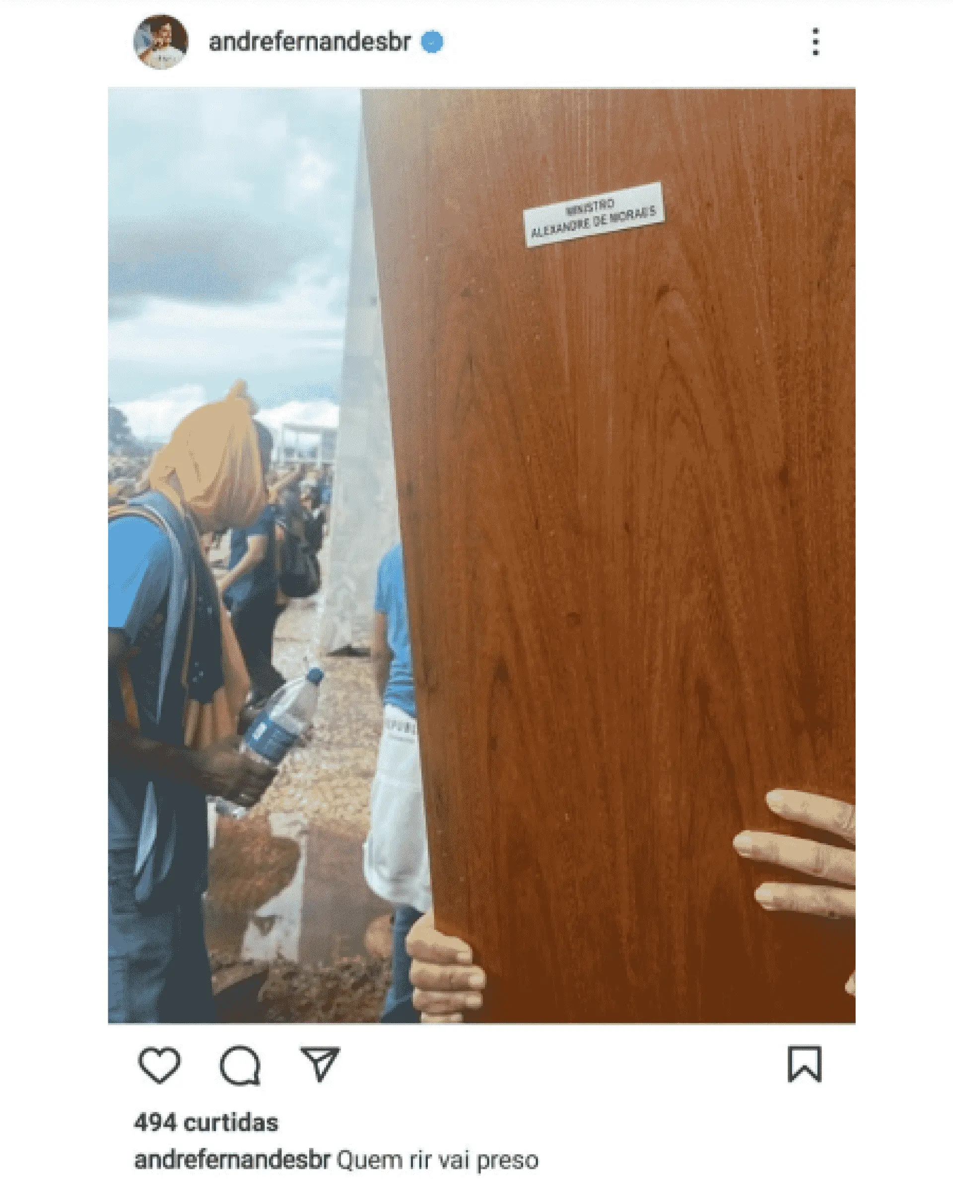 Na última última sexta-feira (6), ele publicou no Twitter que no fim de semana ocorreria o primeiro ato contra o governo Lula. Dois dias depois ocorreu a invasão às sedes dos Três Poderes, com jornalistas agredidos e estruturas e obras de arte destruídas. Ele ainda brincou com o episódio, postando foto da porta do gabinete do ministro Alexandre de Moraes vandalizada pelos terroristas.