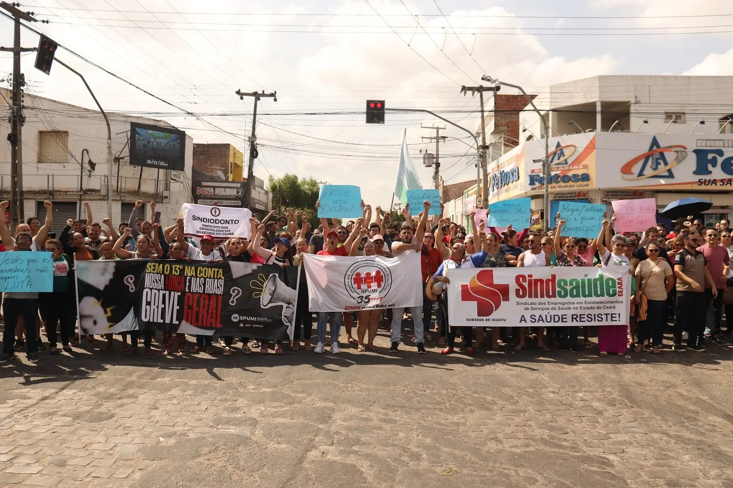 Servidores do município de Iguatu (CE) — 364,6 km distante da capital cearense — estão em greve pela falta de pagamento de salários. Nessa segunda-feira (6), dezenas de trabalhadores realizaram uma mobilização. Conforme o Sindicato dos Servidores Públicos Municipais de Iguatu (Spumi), os salários referentes ao mês de dezembro de 2024 de 4,5 mil pessoas não foram pagos. Já 1,5 mil não receberam o décimo terceiro.