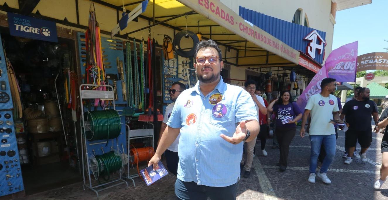 Candidado do Psol a Prefeitura de Fortaleza, Técio Nunes destacou, nesta sexta-feira (6), a criação de orçamento popular impositivo como proposta prioritária da candidatura, reforçando o caráter inovador da proposição. Ele participou de caminhada no Mercado São Sebastião, no centro de Fortaleza.