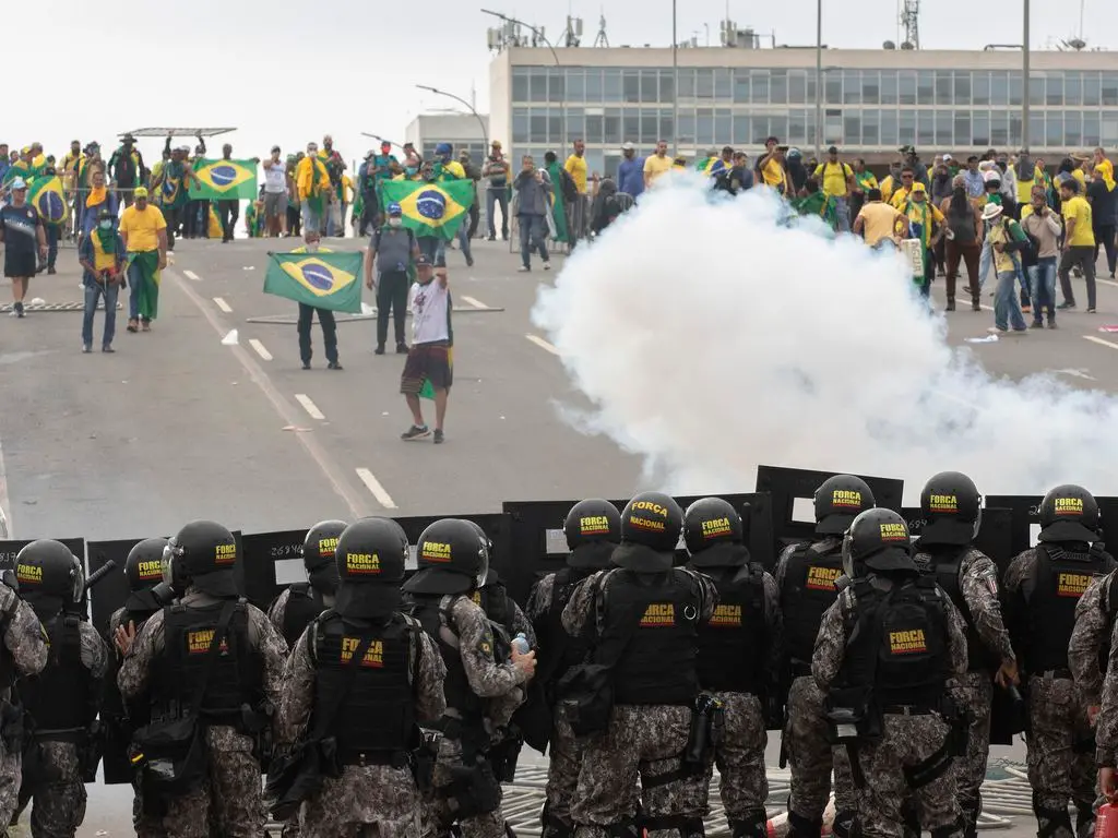 Os prédios foram vandalizados, vidraças foram quebradas, obras de arte depredadas e parte do patrimônio público foi roubado. Nos prédios públicos, os golpistas exigiram a intervenção militar.
