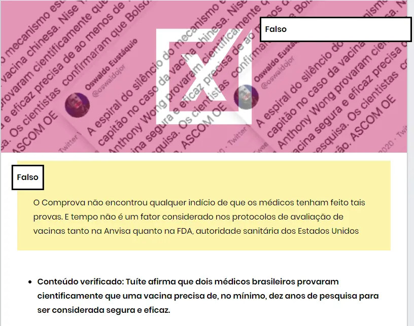 Reportagem do Projeto Comprova, que combate desinformação e conteúdos enganosos na internet