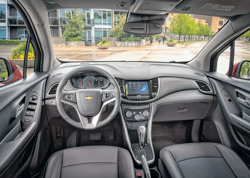 Com elementos estéticos que lembram o Novo Cruze, o interior do Chevrolet Tracker 2018 vem com a porção central revestida em couro com costura aparente, bem como linhas redesenhadas e harmônicas. Saídas de ar verticais envolvem a tela de 7 polegadas da multimídia MyLink - que tem Android Auto, Car Play e OnStar - tendo ainda novos comandos. O porta-malas tem capacidade para levar até 306 litros na posição normal e 735 litros com o banco traseiro rebatido.