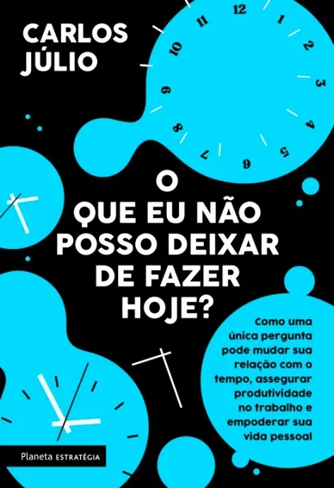 Não por acaso, é esse o título do livro do palestrante e empresário Carlos Júlio, publicado pela Planeta Estratégia. “O que não posso deixar de fazer hoje?” aborda como lidar de maneira saudável com as aflições do mundo moderno e a cobrança do tempo. Ao longo do livro, de 192 páginas, Carlos Júlio compartilha sua angústia com relação ao tema e o que aprendeu ao longo de sua trajetória de sucesso.