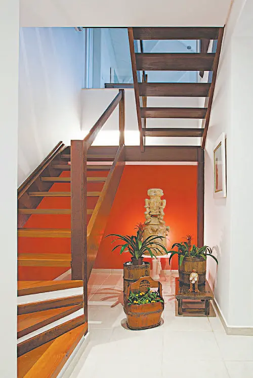Para quem quer priorizar a segurança, principalmente em casas com crianças ou idosos, o tipo de escada mais indicado é a convencional reta, com corrimão de 85cm a 90cm de altura. Outras medidas importantes são a altura dos degraus, mínima de 17,5 cm, e a pisada, com tamanho ideal de 27,5 cm. “Caso exista um vão aberto, tipo mezanino, o guarda-corpo também é um item indispensável”, aconselha Ieda.