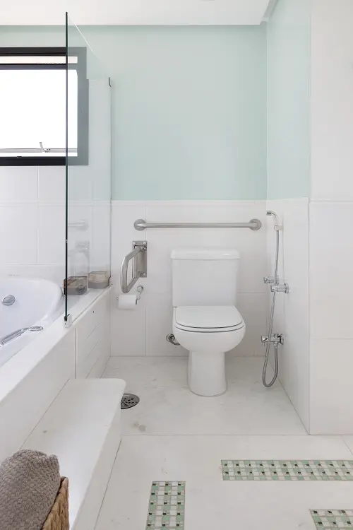 A instalação de barras de apoio, piso antiderrapante no box e assento para banho são cuidados vitais. “É igualmente importante considerar a instalação de barras de segurança na área do lavatório e da bacia sanitária, que normalmente é um modelo mais alto que o padrão”, frisa Erika Mello.