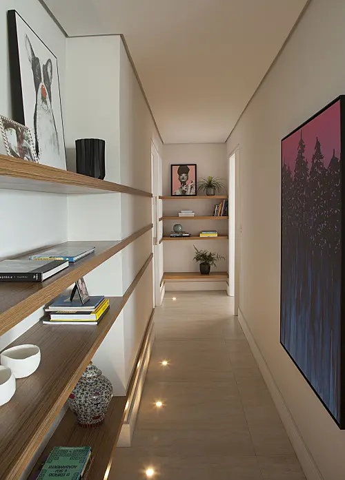 As profissionais da Oliva Arquitetura indicam também a instalação de pontos de luz nos corredores e locais de circulação intensa. Além do teto, é importante uma iluminação direcional que auxilie o morador na locomoção noturna quando, por exemplo, ele acorde à noite para beber água. “Outro ponto interessante no projeto luminotécnico diz respeito à instalação de sensores de iluminação que, por detectarem a presença do residente, facilitam a vida dos idosos”, explica Bianca Atalla.