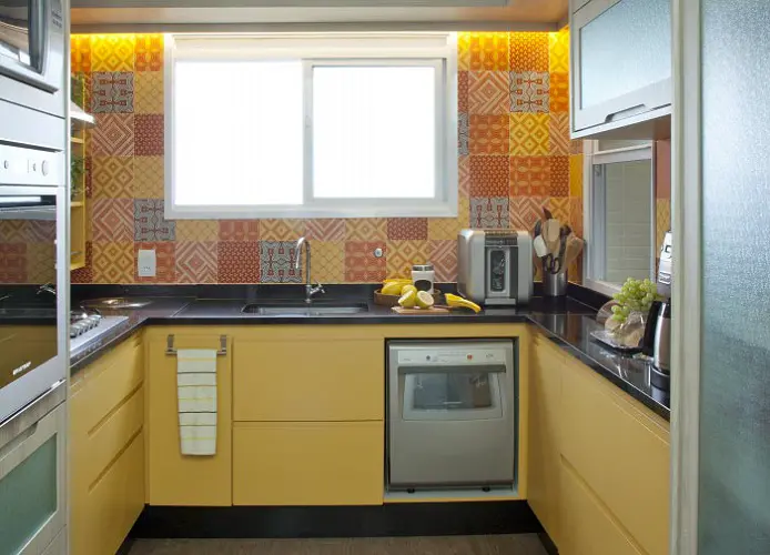 Outra opção é escolher uma cor para ser mais trabalhada no ambiente - afinal, quem disse que a cozinha deve ser planejada apenas com tons neutros? A ousadia das cores gera elegância e um clima despojado à área. O destaque pode se dar no revestimento ou no mobiliário, por exemplo. Entre as alternativas, o amarelo pode ser uma aposta. “Para o dia a dia, o amarelo não é a cor mais usual. Mas dentro do conceito do projeto, ele confere alegria e contraste com a rotina na residência”, explica Renato.