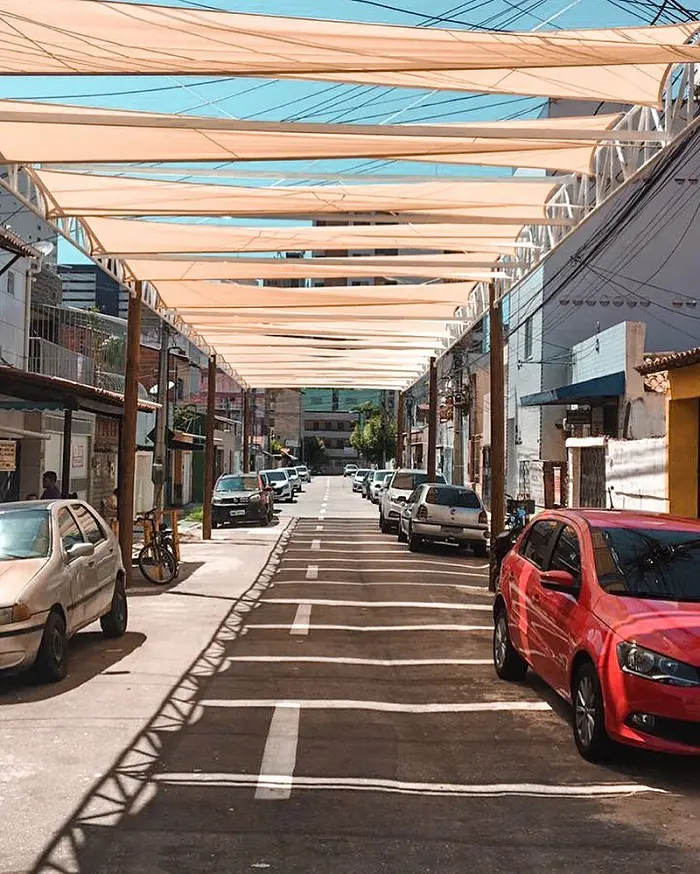 Há diversas maneiras de despertar o afeto – e consequentemente o respeito e o cuidado – por parte dos moradores com os espaços da cidade. Uma delas é o mobiliário urbano, estudado com profundidade pela arquitetura e tema de diversos trabalhos nas últimas décadas. Em Fortaleza, o concurso “Vamos pela Sombra”, realizado pelo Instituto Iracema (mais informações a seguir) em conjunto com a Prefeitura, buscou incentivar a ocupação de alguns espaços públicos com essas peças, de forma criativa e acessível. Os arquitetos Diego Ricca, Jairo Diniz e Leonardo Veras elaboraram um inovador projeto de mobiliário urbano para a Rua Padre Justino, na Praia de Iracema.