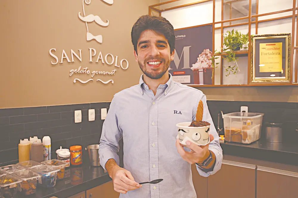 Nessa jornada empreendedora, Renan Melo de Aguiar contou com a parceria da esposa Renata Aguiar, namorada na época em que a ideia do negócio surgiu. “Fiz uma viagem com a Renata para os Estados Unidos, em 2011, e lá nós conhecemos uma sorveteria americana, a Cold Stone, que trabalha com a pedra gelada. Isso chamou muito nossa atenção, pois era um negócio em potencial”, recorda Renan. A ideia voltou para Fortaleza e foi concretizada em 2012 com a Gelateria San Paolo, aberta na Rua Ana Bilhar, no bairro Aldeota. “Os primeiros dias ‘explodiu’. A fila dava volta no quarteirão e nós vimos que tínhamos um bom negócio na mão”, conta.