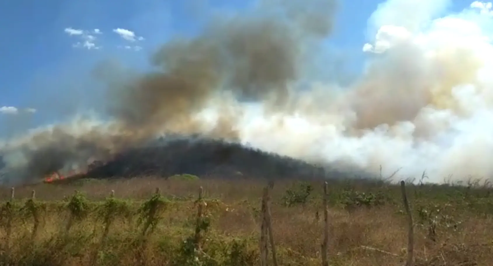 O município de Itapíuna, na região do Maciço de Baturité no Ceará, registrou um incêndio de grandes proporções na tarde deste domingo (4). Conforme informações do Corpo de Bombeiros, as chamas atingiram uma área entre 180 e 200 hectares de mata próximo a residências. Porém, nenhum imóvel foi danificado.