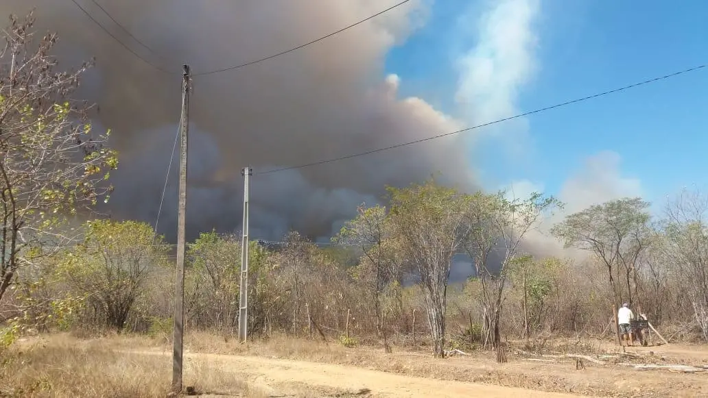 Pelo menos dois incêndios foram registrados nos municípios de Santa Quitéria e Ipueiras desde a última sexta-feira (7), de acordo com informações do comandante adjunto da Cia de Crateús, Júnior Prado. Neste domingo (9), as chamas ainda perduravam em Santa Quitéria, na região da Fazenda Ipueiras, na zona rural.